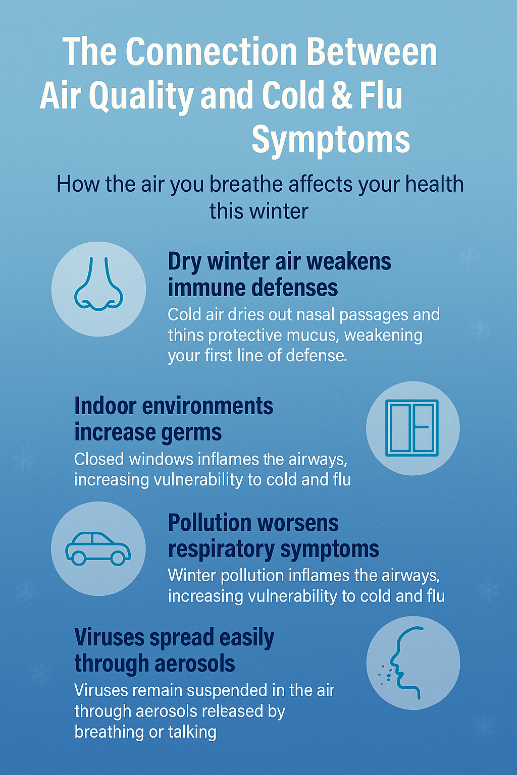 - Keep windows and doors closed when air quality is poor.